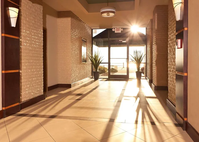 The Holiday Inn & Suites offers direct beach access and numerous amenities, including three outdoor pools and an indoor heated pool featuring a lazy river. Rooms are equipped with modern conveniences such as flat-screen TVs and microwaves, while select accommodations boast private balconies with ocean views. Guests can enjoy various dining options at the three on-site restaurants serving breakfast, lunch, and dinner. Located within close proximity to the Virginia Beach Sports Center, this hotel caters to families looking for recreational activities. Laundry services add an extra level of convenience for longer stays.
